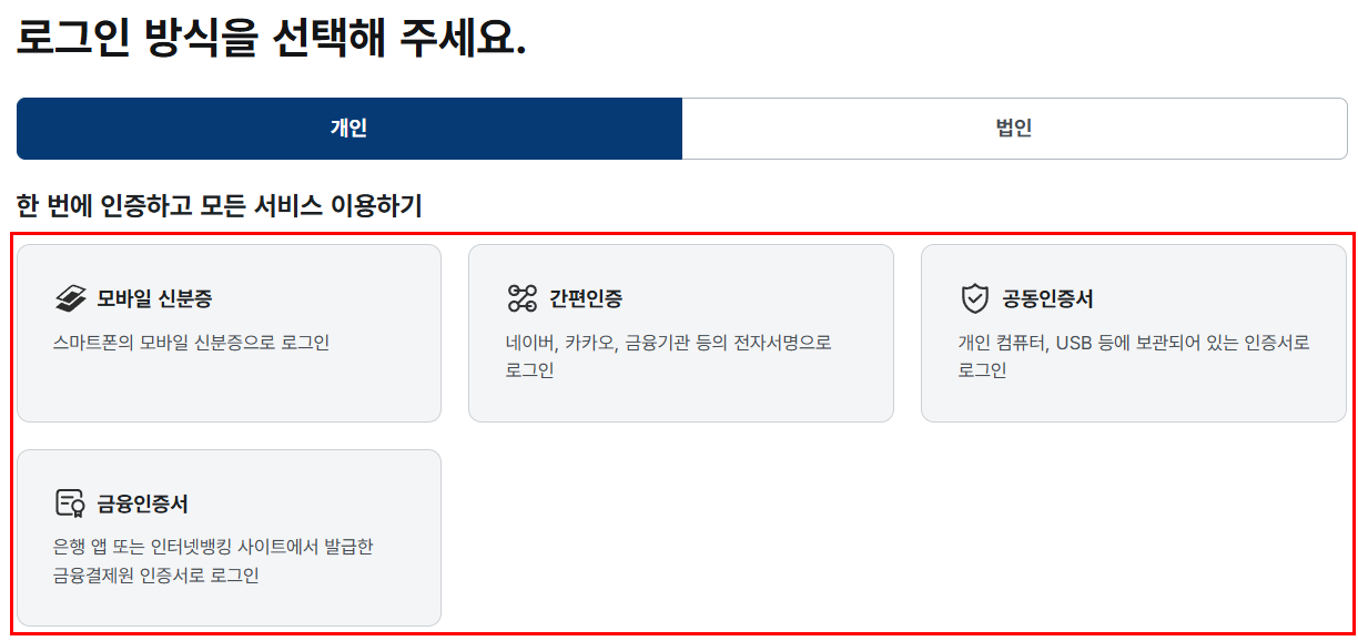 저는 카카오 인증서로 했는데요, 공동인증서도 되고, 비회원 신청도 가능해요.